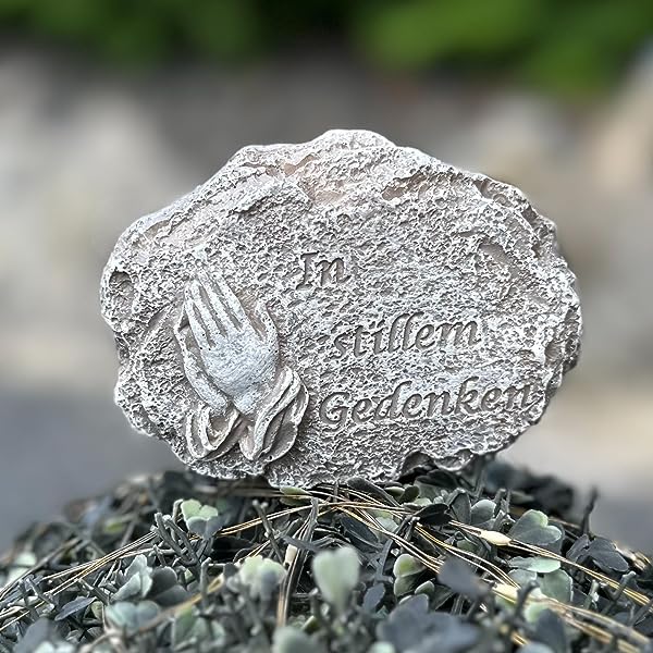 eberin · Urnengrab Gedenkstein „betende Hände“ / Trauerspruch „geliebt und unvergessen“ Sandfarbig
