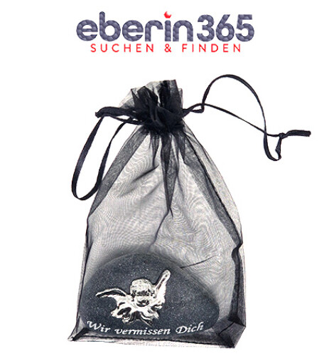 eberin · Großer Gedenkstein mit Motiv „Engel“ und Spruch „Wir vermissen Dich“ · Anthrazit